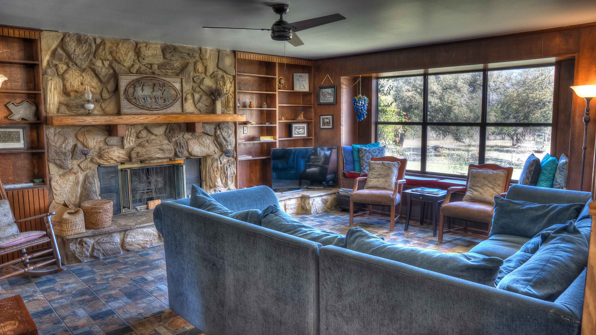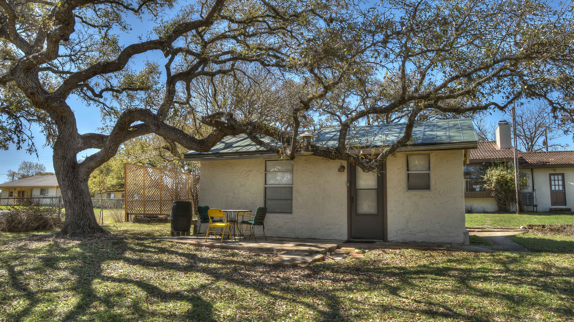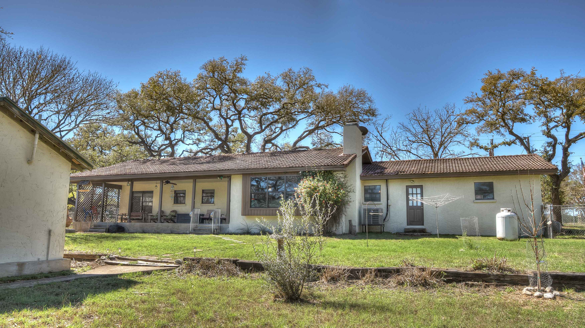 Rock ‘N Utopia is a Spanish style home that sleeps 10, 6 in main house and 4 in the cabana. The house is located near the banks of the Sabinal River on 1.6 acres, just minutes from Main St. in Utopia, Texas. It's the perfect vacation home to enjoy an abundance of fun outdoor activities such as fishing, swimming, canoeing and bird watching. If you enjoy fishing, you'll be pleased to know that the clear waters of the Sabinal River are stocked in February with rainbow trout and yearly with catfish while several species of bass and perch are common catches year-round. If you enjoy wildflowers, springtime is gorgeous. After a long day of enjoying the outdoors, there's no better place to wind down than in the peace and quiet of the Texas Hill Country. If you're looking to get away from the city life, Rock ‘N Utopia is the place to turn off your phones and forget about the daily grind. Enjoy a beautiful view of the Sabinal River and Texas Wildlife from the living room's large bay window or step out on the open huge back porch and sip your morning coffee while watching White-tailed deer, Axis deer and fluttering hummingbirds with all their feathered friends. Star-gazing from the hammock in the back yard offers incredible views of the starlit night sky that you won't find in the city or sit on the front porch and watch the sun set over the ever-changing colors of the Texas Hills. You can also find every daily amenity that you need in this beautiful home away from home. The home has central AC and heat for your comfort and a gas fireplace to cozy up your cool evenings in the spacious living area. The cabana is a short walk behind the house and includes a bathroom, shower and queen size bed with fold-out futon as well as AC and an electric space heater. If you're in the mood to explore the surrounding areas there are many options. Lost Maples State Park and Garner State Park are both 15 miles away, while Bandera, the Cowboy Capital of the World, is a 30 minute drive east. Just minutes away golfers can enjoy a beautiful 9-hole golf course that was featured in the movie 'Seven Days in Utopia'.