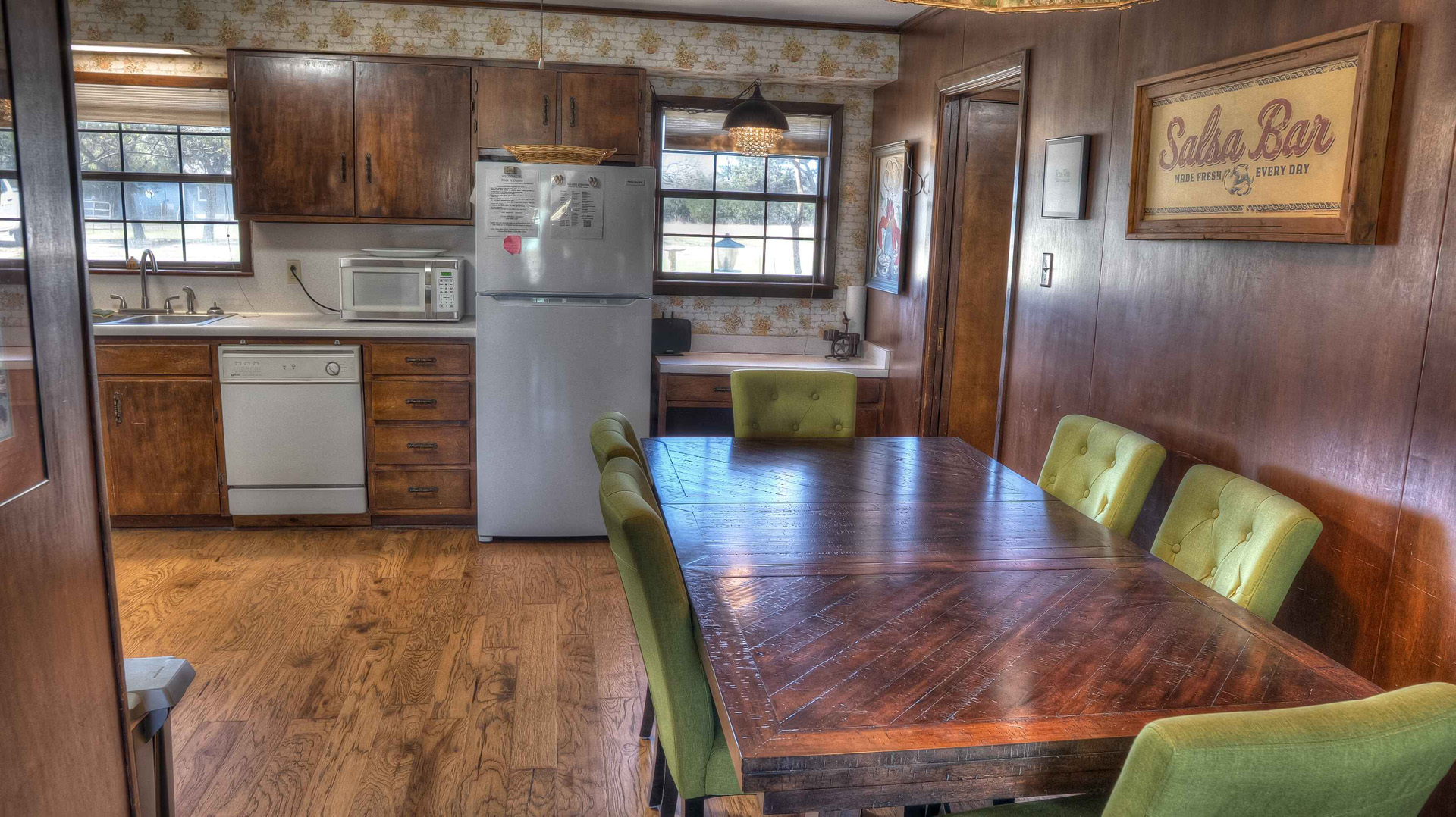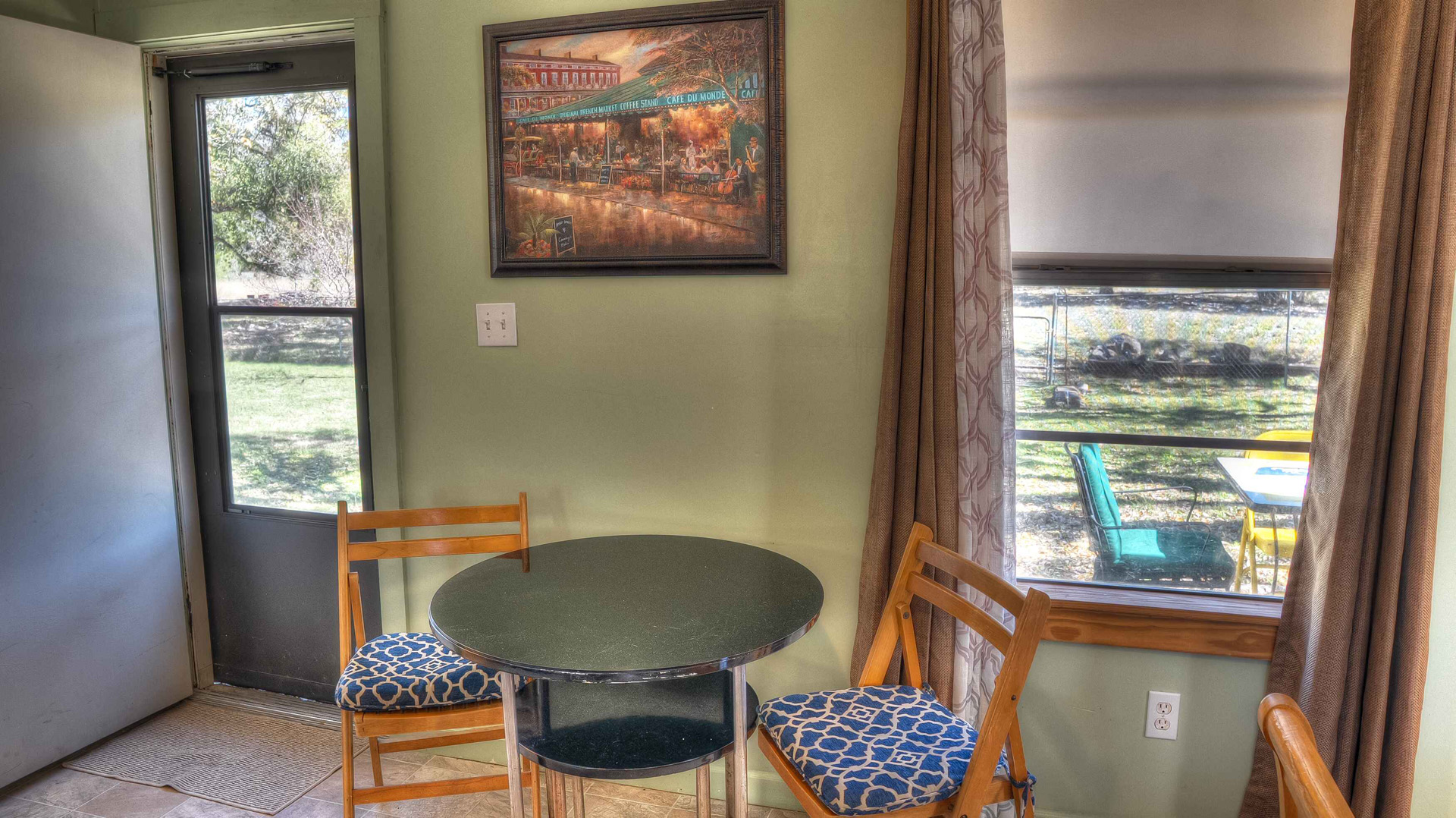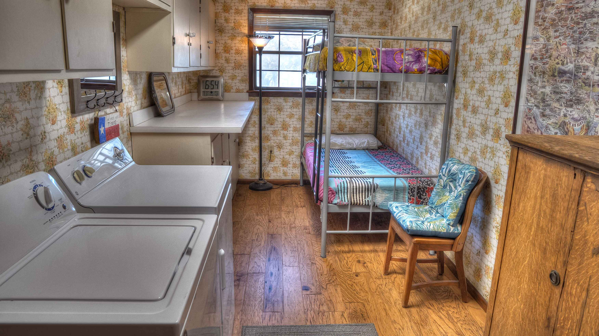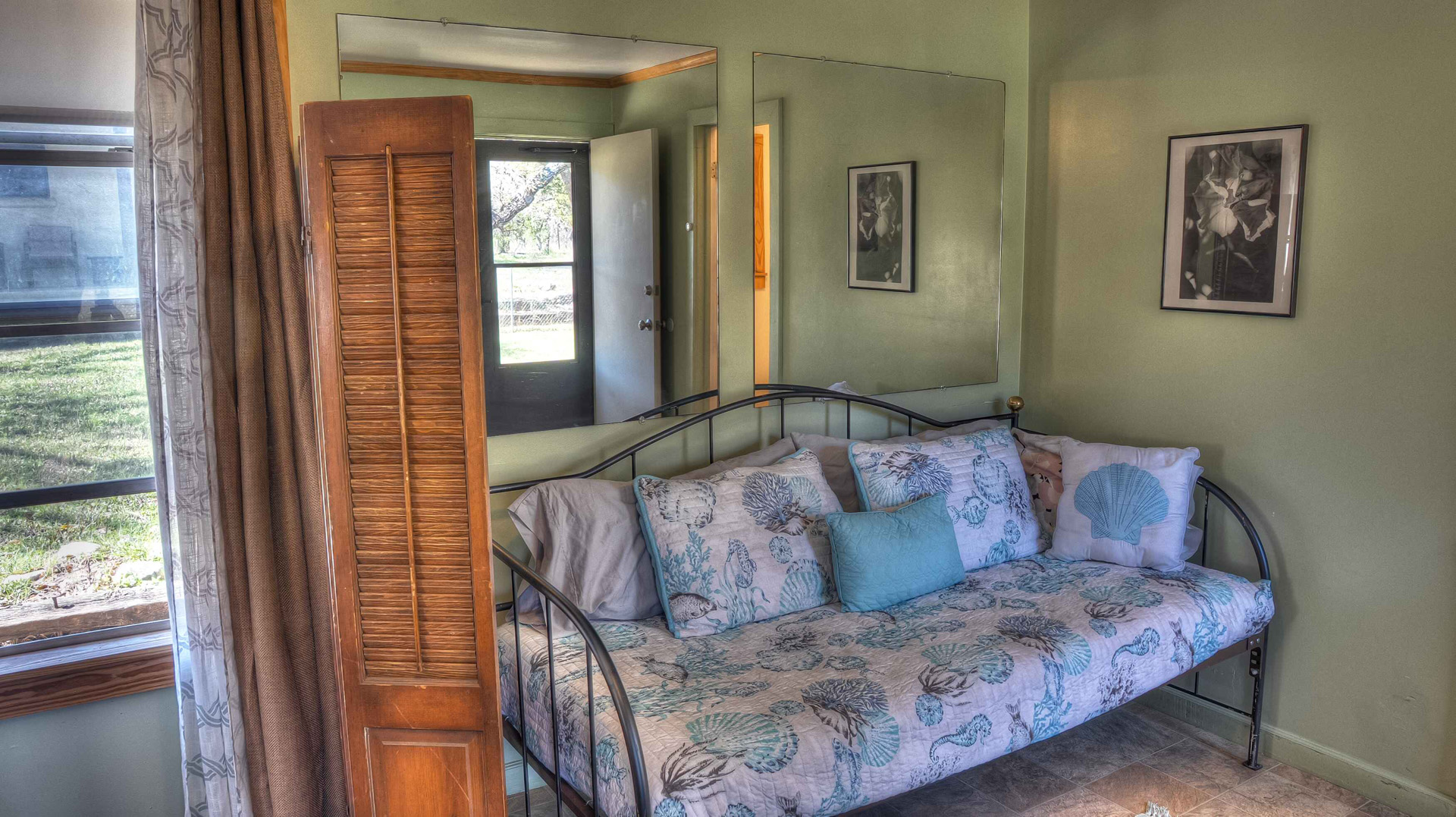 Rock ‘N Utopia is a Spanish style home that sleeps 10, 6 in main house and 4 in the cabana. The house is located near the banks of the Sabinal River on 1.6 acres, just minutes from Main St. in Utopia, Texas. It's the perfect vacation home to enjoy an abundance of fun outdoor activities such as fishing, swimming, canoeing and bird watching. If you enjoy fishing, you'll be pleased to know that the clear waters of the Sabinal River are stocked in February with rainbow trout and yearly with catfish while several species of bass and perch are common catches year-round. If you enjoy wildflowers, springtime is gorgeous. After a long day of enjoying the outdoors, there's no better place to wind down than in the peace and quiet of the Texas Hill Country. If you're looking to get away from the city life, Rock ‘N Utopia is the place to turn off your phones and forget about the daily grind. Enjoy a beautiful view of the Sabinal River and Texas Wildlife from the living room's large bay window or step out on the open huge back porch and sip your morning coffee while watching White-tailed deer, Axis deer and fluttering hummingbirds with all their feathered friends. Star-gazing from the hammock in the back yard offers incredible views of the starlit night sky that you won't find in the city or sit on the front porch and watch the sun set over the ever-changing colors of the Texas Hills. You can also find every daily amenity that you need in this beautiful home away from home. The home has central AC and heat for your comfort and a gas fireplace to cozy up your cool evenings in the spacious living area. The cabana is a short walk behind the house and includes a bathroom, shower and queen size bed with fold-out futon as well as AC and an electric space heater. If you're in the mood to explore the surrounding areas there are many options. Lost Maples State Park and Garner State Park are both 15 miles away, while Bandera, the Cowboy Capital of the World, is a 30 minute drive east. Just minutes away golfers can enjoy a beautiful 9-hole golf course that was featured in the movie 'Seven Days in Utopia'.