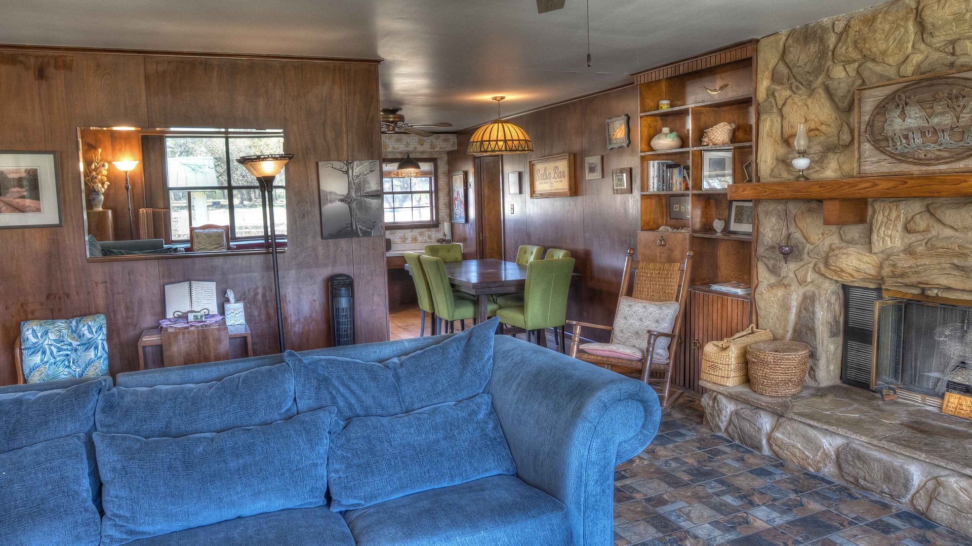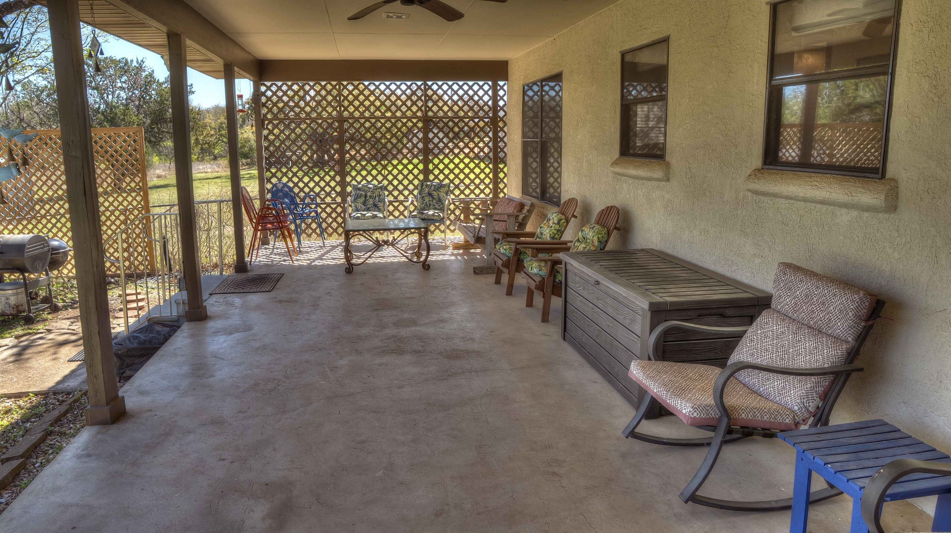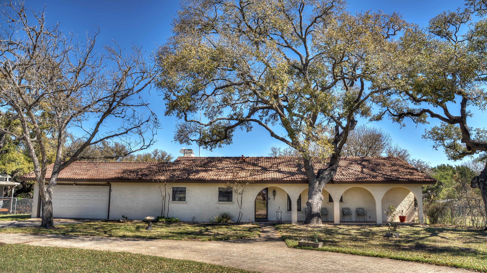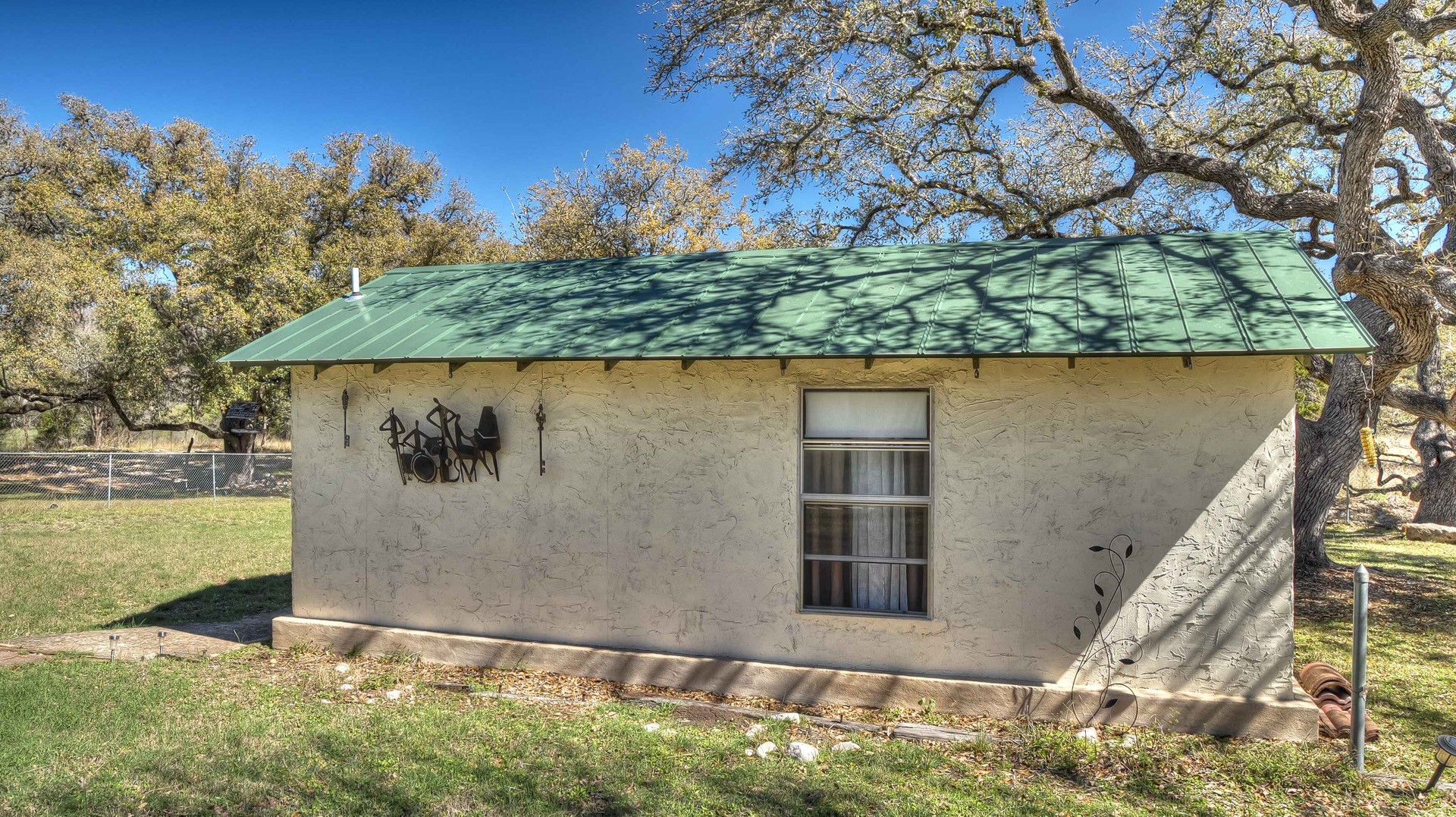 Rock ‘N Utopia is a Spanish style home that sleeps 10, 6 in main house and 4 in the cabana. The house is located near the banks of the Sabinal River on 1.6 acres, just minutes from Main St. in Utopia, Texas. It's the perfect vacation home to enjoy an abundance of fun outdoor activities such as fishing, swimming, canoeing and bird watching. If you enjoy fishing, you'll be pleased to know that the clear waters of the Sabinal River are stocked in February with rainbow trout and yearly with catfish while several species of bass and perch are common catches year-round. If you enjoy wildflowers, springtime is gorgeous. After a long day of enjoying the outdoors, there's no better place to wind down than in the peace and quiet of the Texas Hill Country. If you're looking to get away from the city life, Rock ‘N Utopia is the place to turn off your phones and forget about the daily grind. Enjoy a beautiful view of the Sabinal River and Texas Wildlife from the living room's large bay window or step out on the open huge back porch and sip your morning coffee while watching White-tailed deer, Axis deer and fluttering hummingbirds with all their feathered friends. Star-gazing from the hammock in the back yard offers incredible views of the starlit night sky that you won't find in the city or sit on the front porch and watch the sun set over the ever-changing colors of the Texas Hills. You can also find every daily amenity that you need in this beautiful home away from home. The home has central AC and heat for your comfort and a gas fireplace to cozy up your cool evenings in the spacious living area. The cabana is a short walk behind the house and includes a bathroom, shower and queen size bed with fold-out futon as well as AC and an electric space heater. If you're in the mood to explore the surrounding areas there are many options. Lost Maples State Park and Garner State Park are both 15 miles away, while Bandera, the Cowboy Capital of the World, is a 30 minute drive east. Just minutes away golfers can enjoy a beautiful 9-hole golf course that was featured in the movie 'Seven Days in Utopia'.