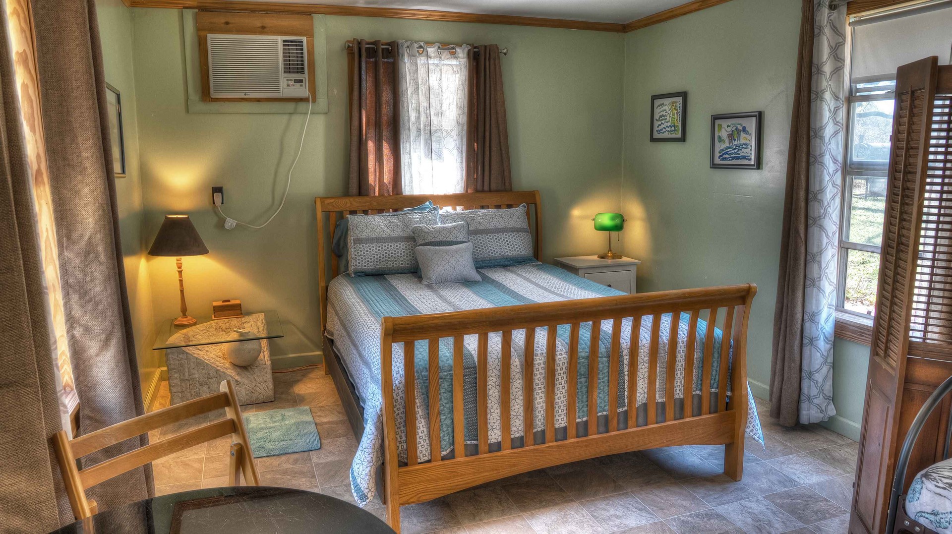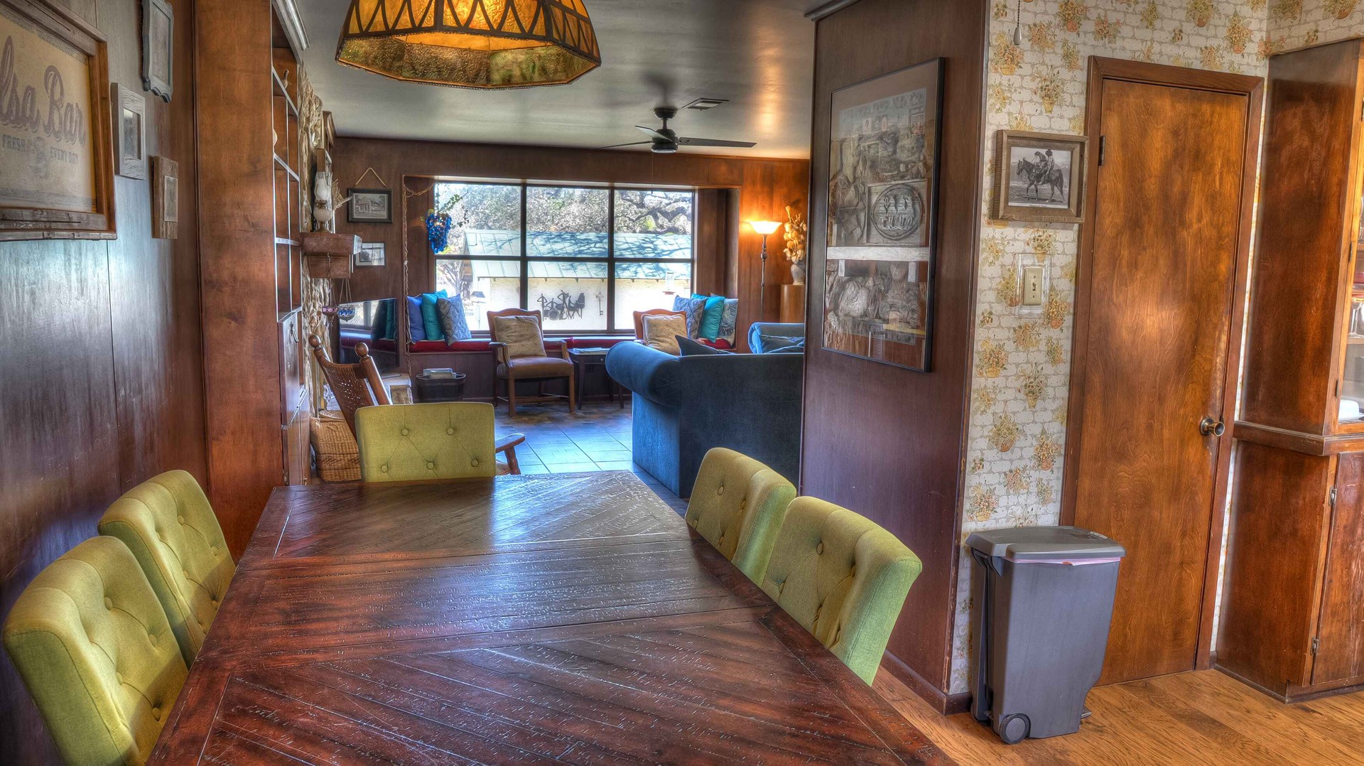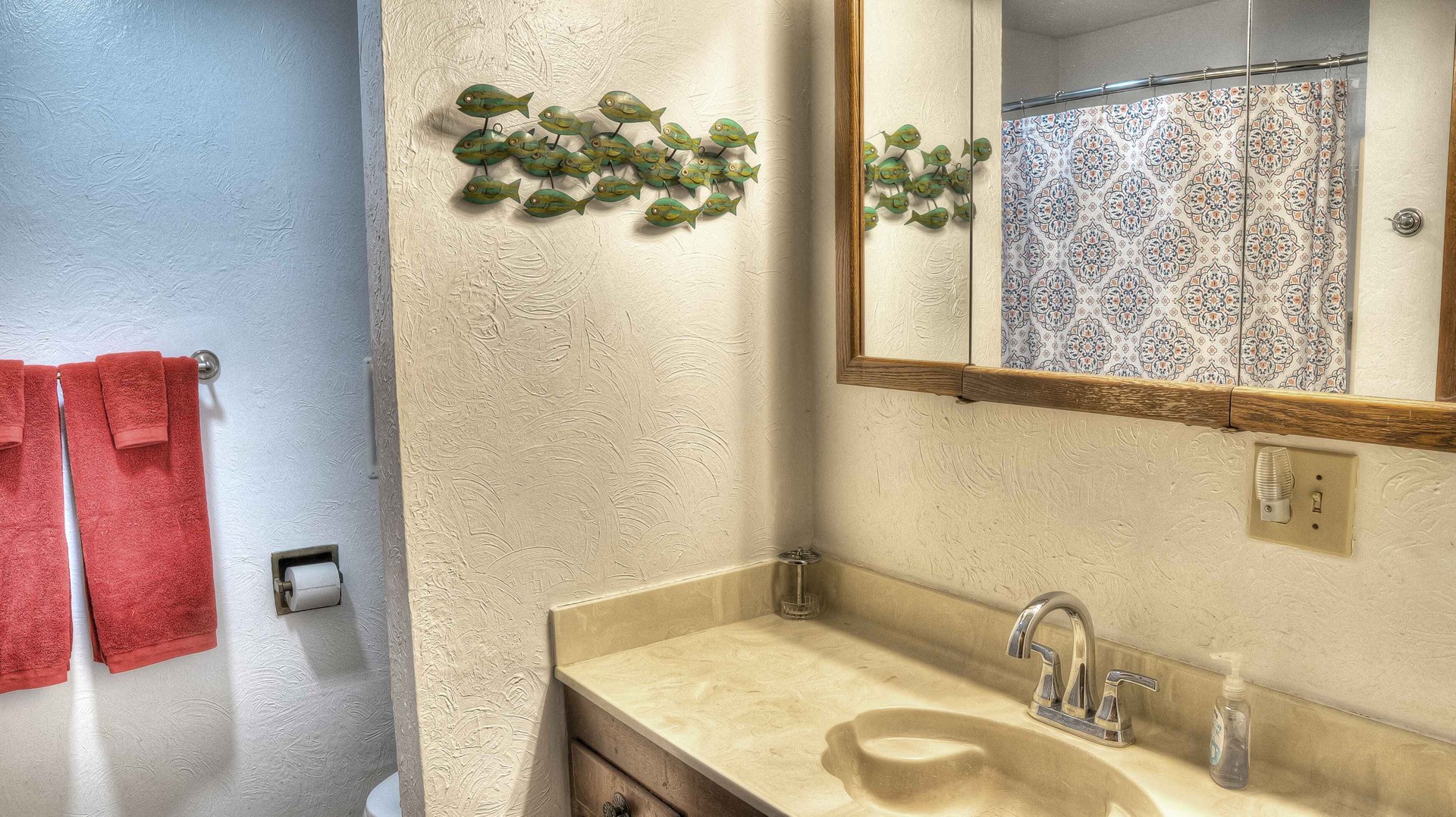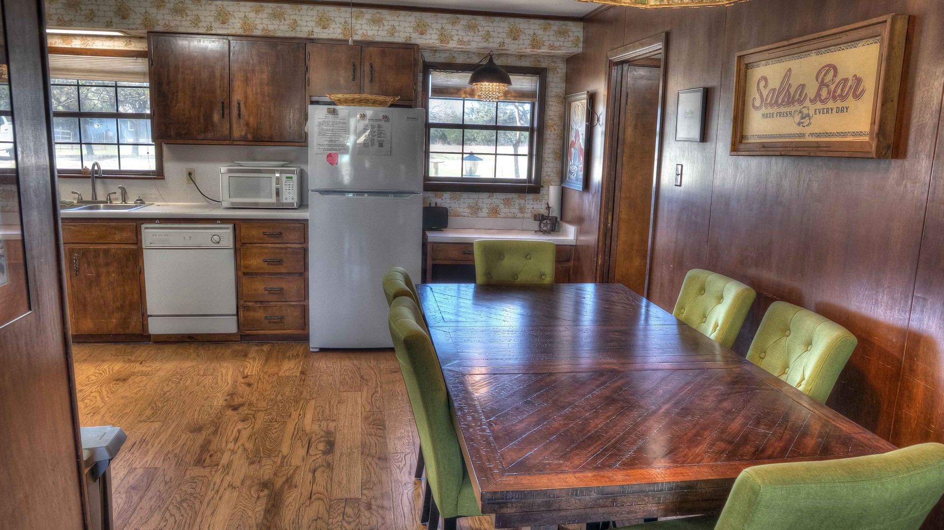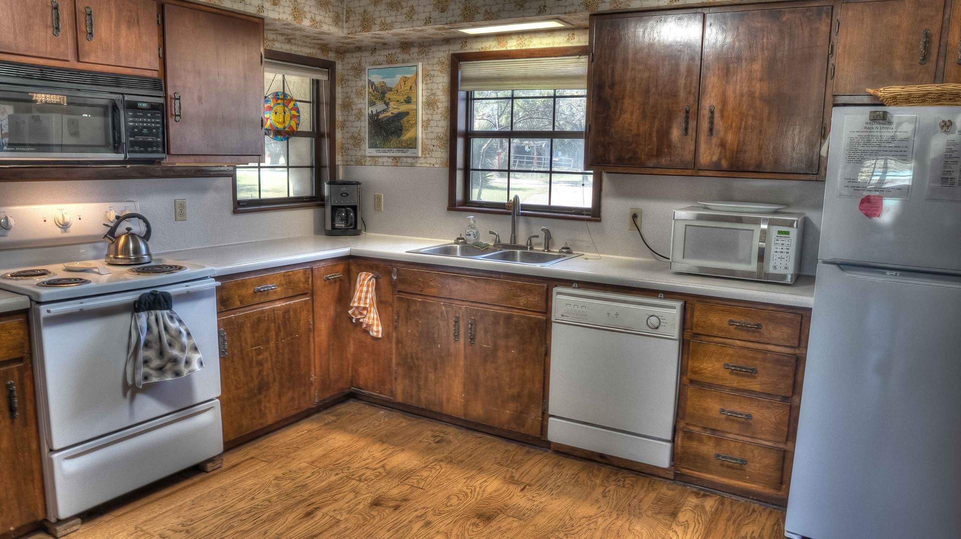 Rock ‘N Utopia is a Spanish style home that sleeps 10, 6 in main house and 4 in the cabana. The house is located near the banks of the Sabinal River on 1.6 acres, just minutes from Main St. in Utopia, Texas. It's the perfect vacation home to enjoy an abundance of fun outdoor activities such as fishing, swimming, canoeing and bird watching. If you enjoy fishing, you'll be pleased to know that the clear waters of the Sabinal River are stocked in February with rainbow trout and yearly with catfish while several species of bass and perch are common catches year-round. If you enjoy wildflowers, springtime is gorgeous. After a long day of enjoying the outdoors, there's no better place to wind down than in the peace and quiet of the Texas Hill Country. If you're looking to get away from the city life, Rock ‘N Utopia is the place to turn off your phones and forget about the daily grind. Enjoy a beautiful view of the Sabinal River and Texas Wildlife from the living room's large bay window or step out on the open huge back porch and sip your morning coffee while watching White-tailed deer, Axis deer and fluttering hummingbirds with all their feathered friends. Star-gazing from the hammock in the back yard offers incredible views of the starlit night sky that you won't find in the city or sit on the front porch and watch the sun set over the ever-changing colors of the Texas Hills. You can also find every daily amenity that you need in this beautiful home away from home. The home has central AC and heat for your comfort and a gas fireplace to cozy up your cool evenings in the spacious living area. The cabana is a short walk behind the house and includes a bathroom, shower and queen size bed with fold-out futon as well as AC and an electric space heater. If you're in the mood to explore the surrounding areas there are many options. Lost Maples State Park and Garner State Park are both 15 miles away, while Bandera, the Cowboy Capital of the World, is a 30 minute drive east. Just minutes away golfers can enjoy a beautiful 9-hole golf course that was featured in the movie 'Seven Days in Utopia'.